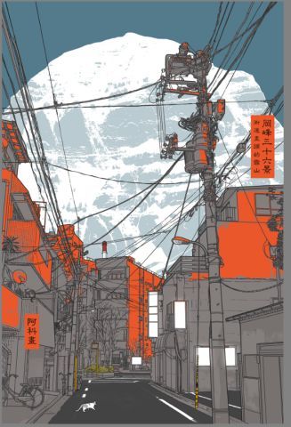 艺高高 / 版画世界 / 冈峰三十六景之街道尽头的雪山