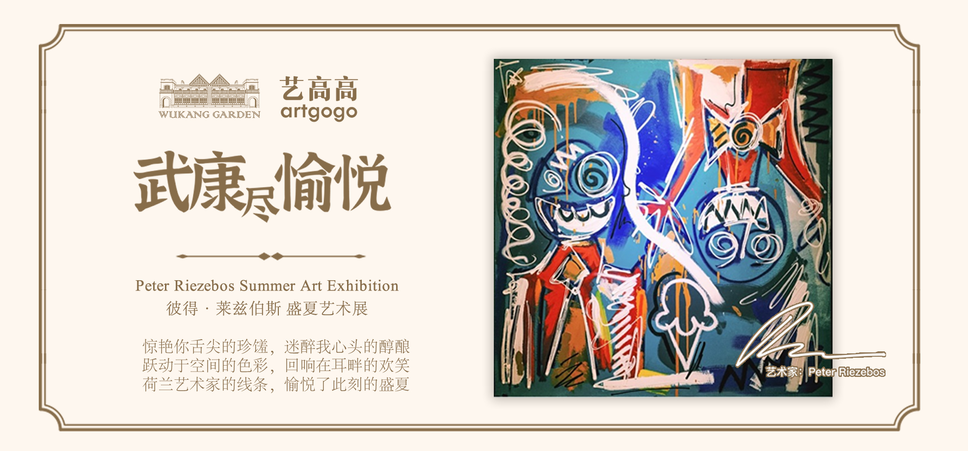 惊艳你舌尖的珍馐,迷醉我心头的醇酿,跃动于空间的色彩,回响在耳畔的欢笑,荷兰艺术家的线条,愉悦了此刻的盛夏。这是武康花园×艺高高的第二个主题艺术展,荷兰艺术家Peter Riezebos的存在主