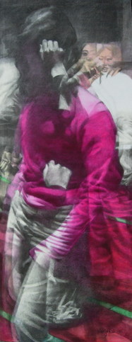 《假面》、《锐舞》等系列作品以在都市迪厅中热舞的青年男女为描绘对象,表现年轻人在舞池中摇摆的身体及其波动的心灵。作品并不在于描摹场景的表象,而是讲述表象背后的深层心理。生活在当下的年轻人,其内心的空虚并非空穴来风,由于社会各方面的迅疾变动,年轻人无法不感到无常,因此对未来缺乏稳定、持久的期望,今晚的热舞结束后,不知道明天会怎样。