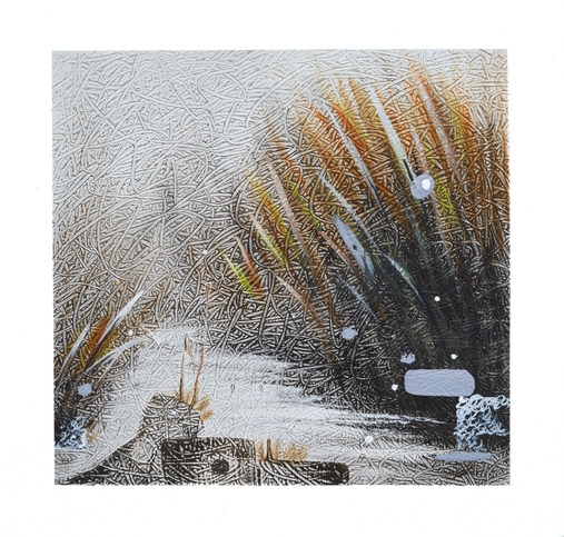 我的画面中表现记忆深处和情感深处的流动痕迹,肌理的随意但却似乎带着明显的意图和倾述。画面充满了传统山水画一般的人文气息:柔软、怀念、如梦如幻,轻描淡色似的线条、沙笔的露白(借鉴传统拓染技法)、烘托应境的淡彩,包括构图模式都为整个画面的叙述作了相应的贡献,呈现内心深处矛盾的景象。画面分割以及留白方式,也是试图以现代图文的方式对传统结构呓语般的画面做个突围和新的解构,以期达到新的阅读方式。
