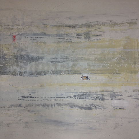 于万千洪流之间,逆流行舟,方显英雄本色。掌一叶孤舟于险峻河滩,自然亦可掌天下于万世。结合中国国画和西方印象派的原创油画作品,唯一版本。