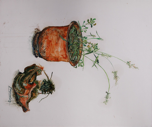 盆栽虽漂亮但漂亮极容易消失选择盆栽作为创作主题就是把它的美丽与倔强化作人的性格和人格的最好表现