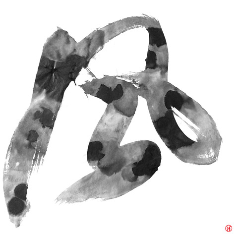 传统的书法是笔墨合一。我将其分解为"0"和“1”。以墨破水的写法拓展了水墨书写的新意境。由追求笔意与章法转为质感与意趣的表达。我称之为“渍游”书法。水与墨分离,而后又合一,在创作的过程中也意趣盎然。同时字形与水墨效果达成有趣的契合,甚至特别的新组合,从而形成新的趣味。