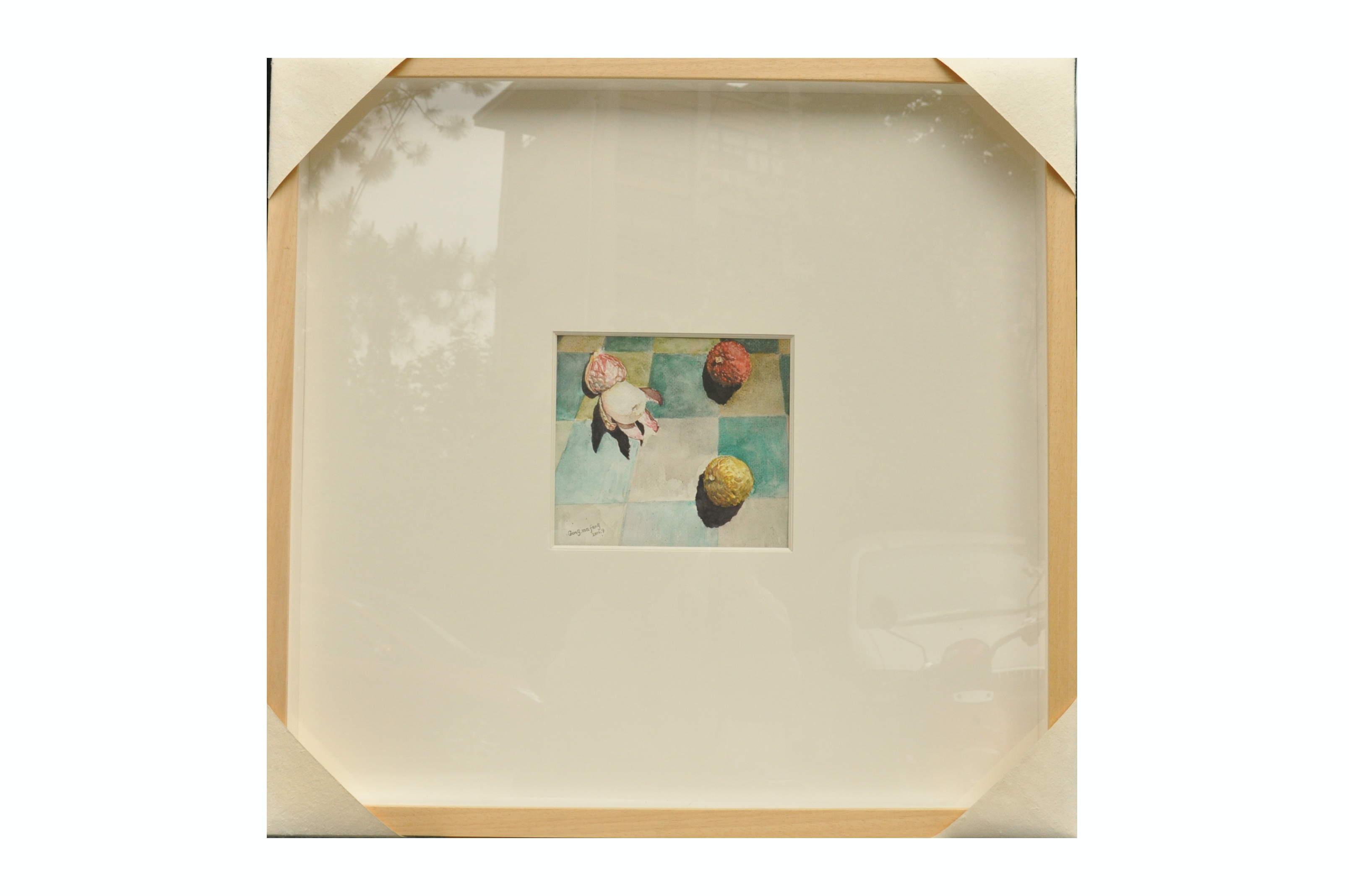 荔枝题材的作品是我计划系列的初尝试。在这系列中我试图探索绘画行为与绘画结果互相的关系,力图展示计划性、尝试性或者说是理性。过程的体现在我的作品中占有主要的意图,手工过程中的人性温度是我对艺术的追求,也是正是现代机器永远也无法替代的精髓。在题材上,这件作品之所以选择荔枝原因有一,它从“一骑红尘妃子笑,无人知是荔枝来。”到现在互相提醒不要多吃,容易上火。再到它外表与内在质感特点之间的矛盾关系似乎又暗示着什么,等等,这些都是吸引我去画它的原因。