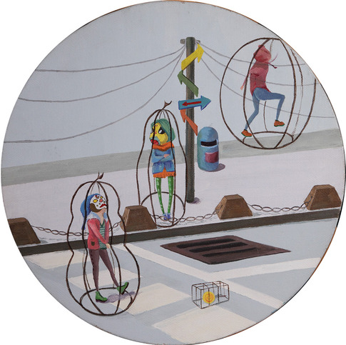 我的作品更想诉说一个故事或者一件事情.人的命运本来就不能掌握,但不至于任人摆布,被人主宰.我的作品中所提及到的现代女性比较多还处于受传统的思想牢笼而导致思想被禁锢.真正属于自己发展的时间仅仅为短短的几年,却还意识不到自己的危机感,把自己的耳朵封闭起来,不愿接受更多的外界信息,以冷漠的一种态度把自己关在一个笼子里面,却未曾感到不适,只是举止稍稍有点端木罢了.其次,她们之所以带着一块面具,举止端木地(被)关在形态各异的铁笼子里面.是因为在社会中,人人都在不同的舞台上表演,为了更出色地表现自我以及保护自我的一种表现形式.