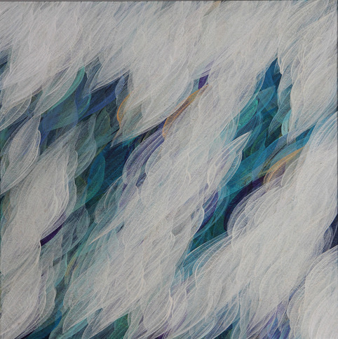 彭博:“佛说微尘,非微尘,是名微尘”一切皆是虚妄,更或空气中的微尘。“一叶一菩提,一花一世界”,树叶相对于银河系来讲就是微尘,树叶相对于纳米级粉尘来讲就是世界。“一切如梦幻泡影,如露亦如电”,从而直接引发我用画背景的方法让单一元素层层叠加将画面中的主体物覆盖,并使其出现幻像。《微尘》就是我通过冥想来捕捉到的那些不可知和不可见的空间里的漂浮物所形成的别样的风景。不知她在世界的什么角落默默的存在着,与我们共生于当下,但我们终不得见。