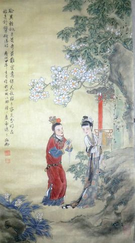 绢本工笔红楼梦宝黛初会
