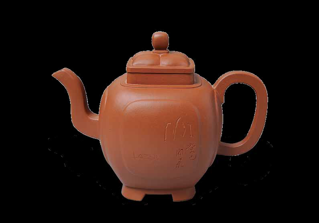 四方菱花壶 陶艺:闻正荣 书画:陈鹏举 陶刻:闻正荣 容量:大 品