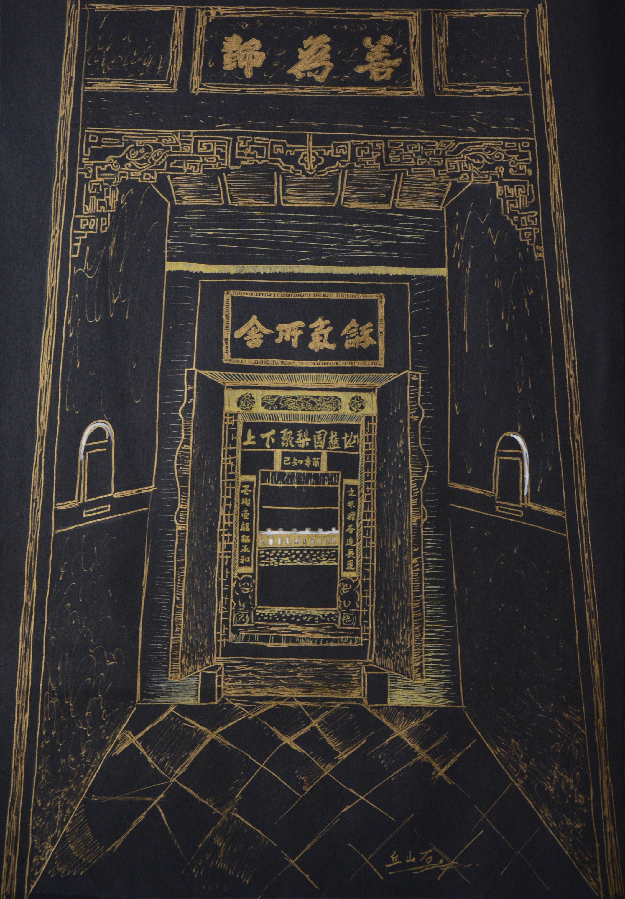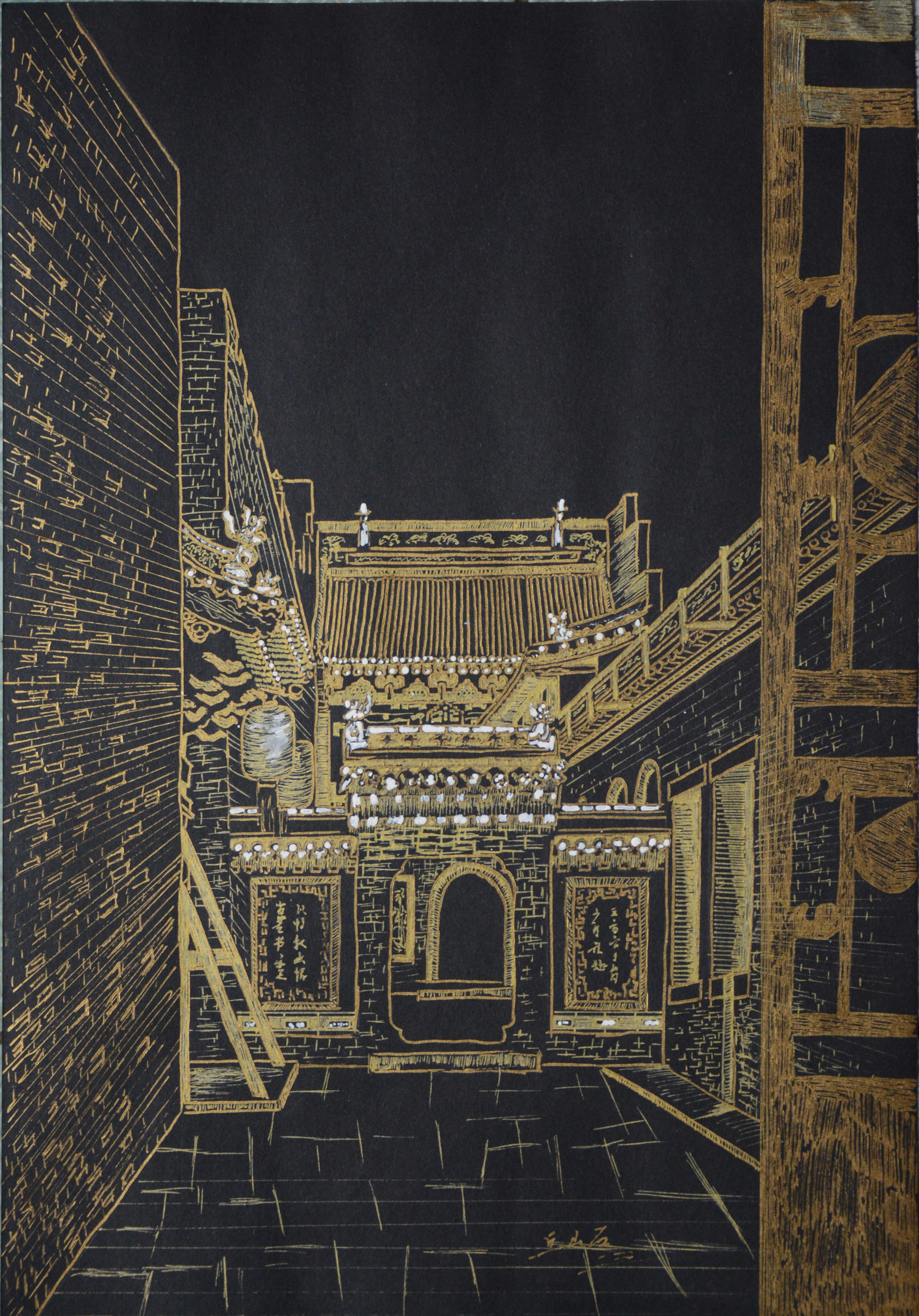 3幅一组,为一个系列,是纸面金漆笔画。 这是一座充满艺术色彩的城,深厚历史底蕴的积淀,造就了它丰富的文化装饰之美。