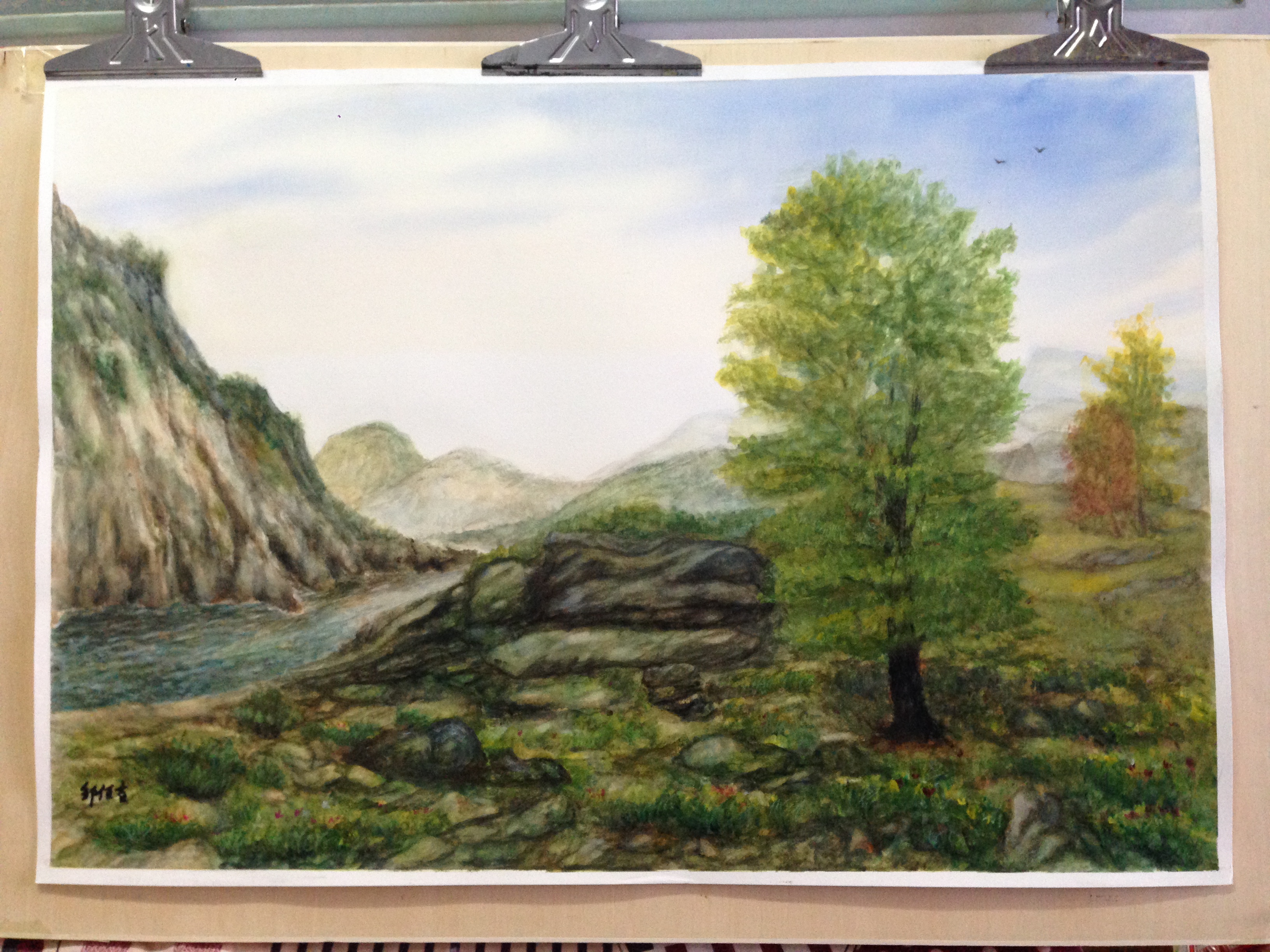 绿水青山才是真正的靠山,因为绿水青山就是金山银山!此画是按中国古代美学原理和健身养生学原理创作的,有一定的健身作用!常看此画与练静养功作用相同。这种画法是我独创,世界领先!常看此画可使人心情愉悦健康长寿!此画是装饰和收藏的上佳画作,并且物美价廉。此画是原创作品全世界仅此一幅,画有价,但视野和格局及健康是无价的,希望您看过不要错过!本人长年定作养生古典油画和水彩画,内容包括肖像画风景画历史画动物画静物画等,可根据您提供的资料及描述进行创作,价格可商议。希望您喜欢我画的画,谢谢!