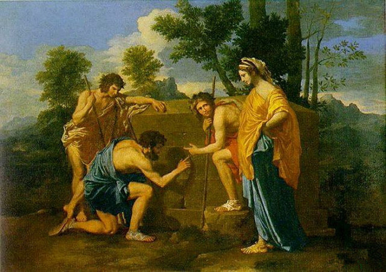 《阿尔卡迪的牧人》普桑 作于1638~1639年 油画 85×121厘米 现藏巴黎卢浮宫